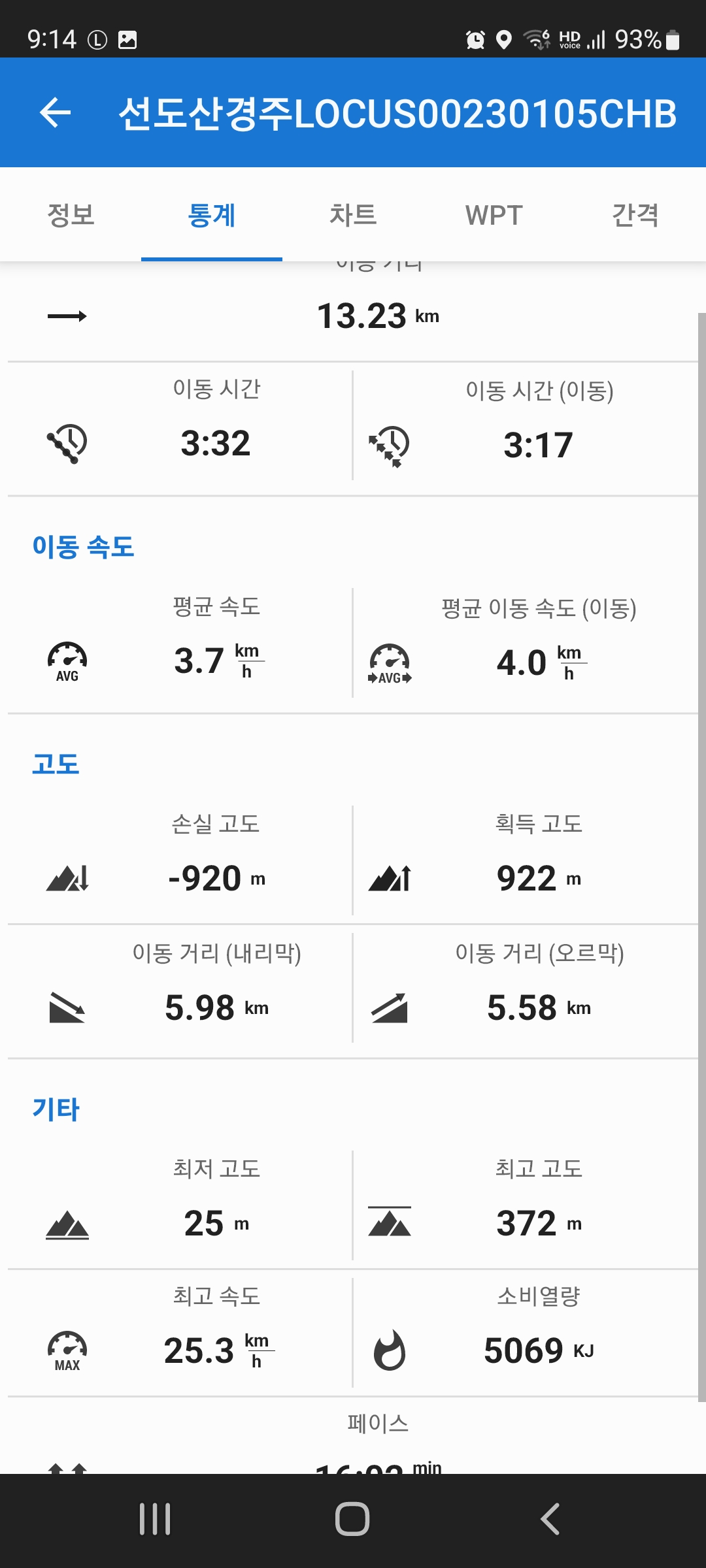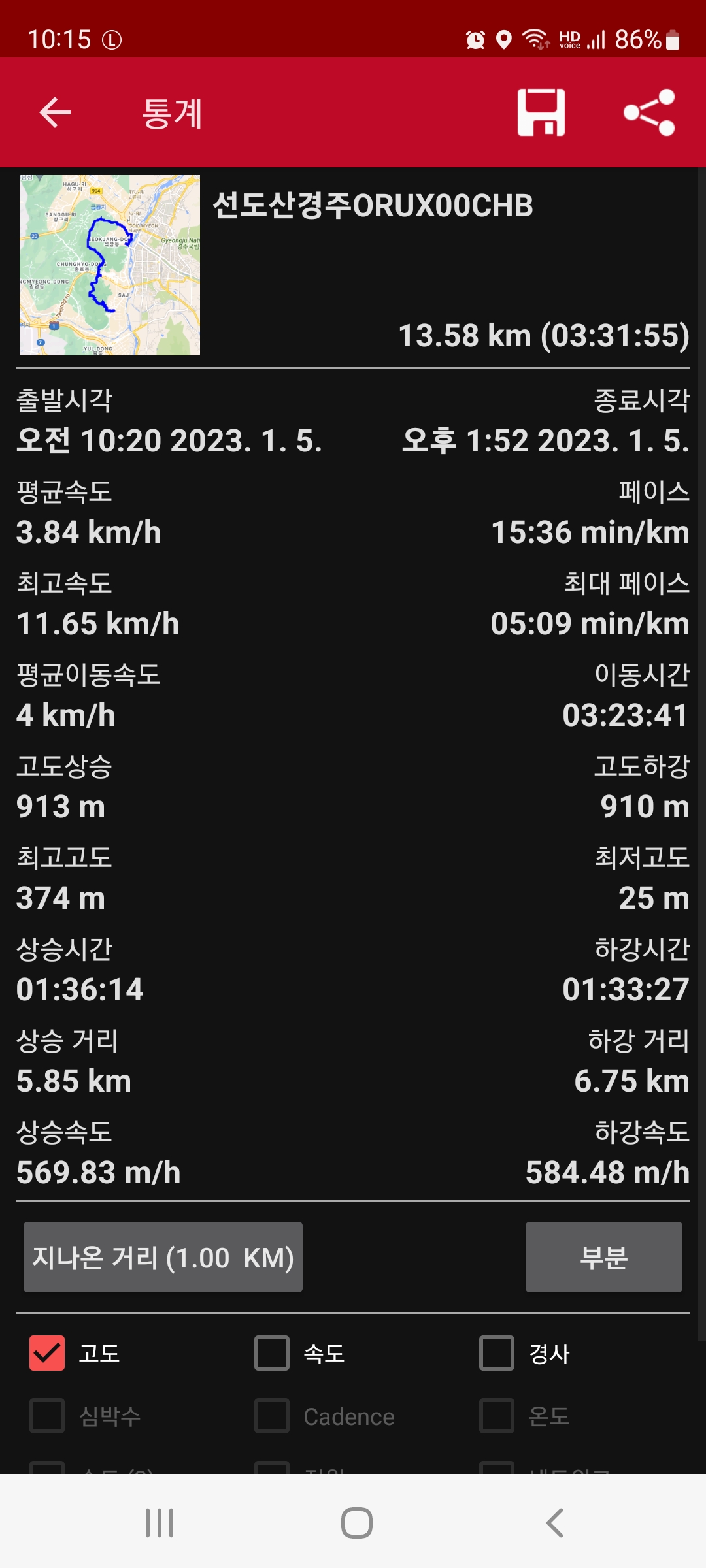 F. 산행시간 : 3시간 32분